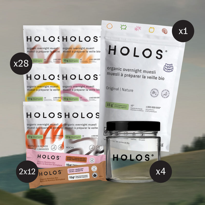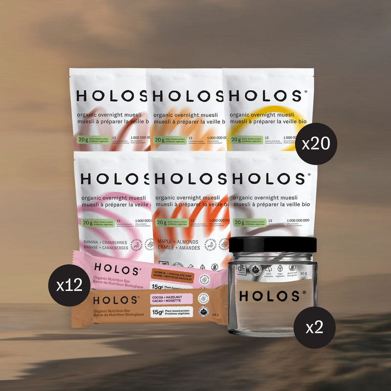 Démarrez votre journée avec nos délicieux déjeuners crémeux et croquants de grains entiers bio avec 20g de protéines, des probiotiques, fruits déshydratés, superaliments et des vitamines et minéraux essentiels.